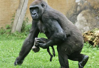 גרמניה: הגורילה גאנה מסרבת להיפרד מבנה שמת
