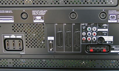 אפשרויות החיבור מרובות ומגוונות, מאחור, ישנן שלוש כניסות HDMI, שלושה חיבורי סקארט (מראה שהופך לנדיר יותר ויותר בימינו, אך מהווה יתרון עבור רוב המשתמשים שמחוברים דרך ממיר יס או הוט שאינו HD), חיבור וידאו קומפוננט, כניסת מחשב VGA, כניסת אודיו אנלוגית. היציאות מאחור כוללות אודיו דיגיטלי אופטי, אודיו אנלוגי. המסך מוגדר כמוניטור שאינו כולל רמקולים מובנים, לכן, יש בנמצא יציאה לזוג רמקולים וגם סאבוופר.