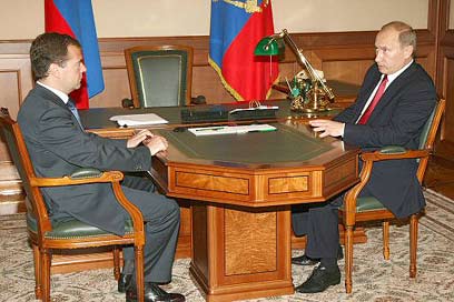 פוטין ומדבדב, היום. "בחירה לא קלה, הזדמנות להציל חיים" (צילום: AFP)