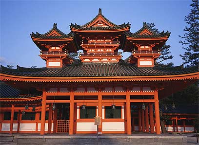 נוטים להיות אדומים. מקדש שינטו טיפוסי