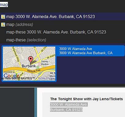 הפקודה map מאתרת על גבי מפה כתובות שסימנו באתר, או שהקלדנו - כמובן שכמו שירותי מיפוי רבים, גם זה איננו רלוונטי לכתובות בישראל - אך יכול לשמש אותנו כאשר אנחנו גולשים לאתר המלון בחו"ל ורוצים לדעת איפה הוא נמצא. עוד תוכלו לבדוק את מזג האוויר עם המילה weather (גם עבור ישראל), לשלוח דברים לטוויטר שלכם - עם המילה twitter, ובעיקר לחפש באתרים שונים ברשת (flickr, youtube ועוד).