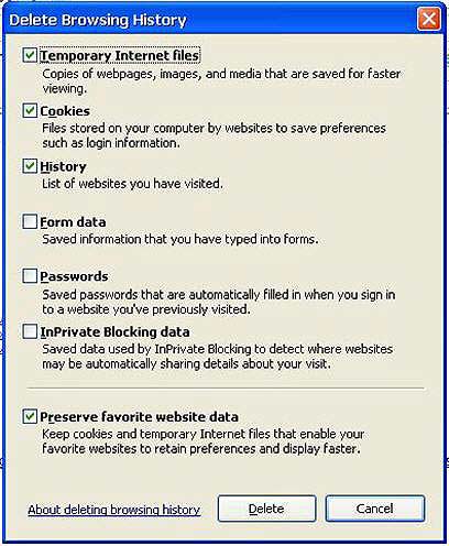 למי שמחפש לטשטש עקבות, או סתם חושש למידע הפרטי שלו - ניתן למחוק את כולו מחלון אחד בשם Delete Browsing History. בדיוק כמו בפיירפוקס - מקישים על Ctrl+Shift+Delete ואפשר למחוק במחי כפתור את קבצי Cookie , הסטורית גלישה, טפסים שמילאתם, סיסמאות ועוד.