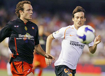 דויד סילבה מולנסיה עם אנריקה קוראלס ממאיורקה (צילום: איי אף פי)