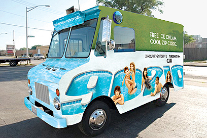 ואם זה לא מספיק, ב-1 בספטמבר, יום לפני עליית הסדרה ויום חופש אמריקאי מסורתי ("לייבור דיי"), ה-CW תחלק 100,000 שלגונים. הרשת שכרה אוטו-גלידות מעוטרים בלוגו "90210" שיסיירו בניו יורק, אל.איי, ושיקגו כשהם משמיעים את מוזיקת הפתיחה של הסדרה ויחלקו ממרכולתם הקרירה (כשאנון דוהרטי?) והמתוקה (כג'ני גארת'?) להמונים.