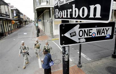 חיילים מסיירים ברחובותיה השוממים של ניו-אורלינס (צילום: AP)