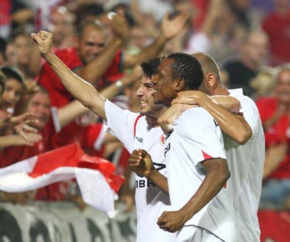 סמואל יבואה חוגג עם החברים את השער הראשון (אלי אלגרט)