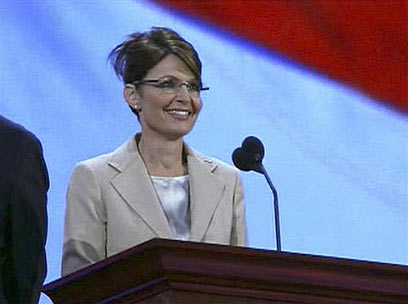 שרה פיילין על במת הוועידה הרפובליקנית, מתכוננת (צילום: AP)