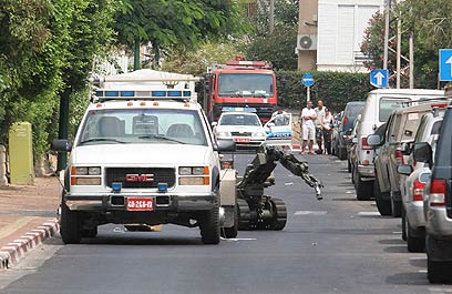 הרובוט המשטרתי עם מטען הצינור (צילום: עידו ארז)