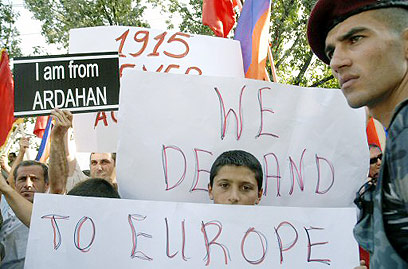 כדורגל מקרב לבבות: נשיא טורקיה, עבדאללה גול, הגיע אחר הצהריים (שבת) לביקור היסטורי בארמניה השכנה. אלפי מפגינים נאספו בבירה ירוואן וקידמו את פניו בקריאות הדורשות לחקור את טבח-העם שחוללה ארצו לפני כמאה שנה.