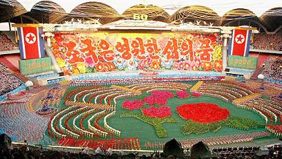 החזרות לקראת החגיגות באיצטדיון בפיונגיאנג (צילום: AFP)