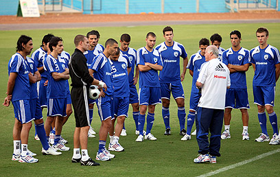 קשטן ושחקני הנבחרת: "שום דבר לא מונח בכיס" (צילום: ראובן שוורץ)