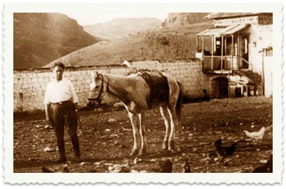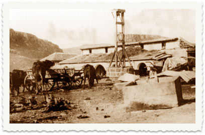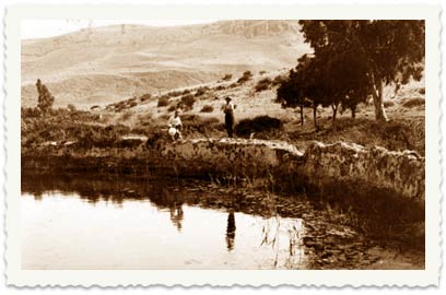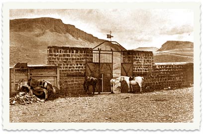 3. בשנת 1912 ערך הצלם הווינאי ליאו קאהן מסע צילום בא"י, והגיע גם לחוות מגדל. בצילום: שער הכניסה לחווה