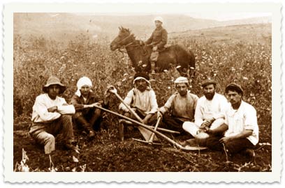 7. חוות מגדל, 1912,. פועלים בהכשרת שטח החווה
