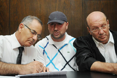 בן-דוד יחד עם שני פרקליטיו, היום בהארכת המעצר (צילום: ירון ברנר)