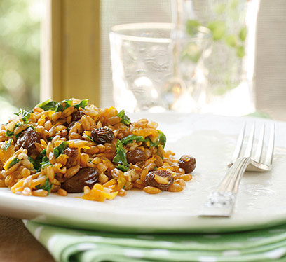 סלט כוסמין או חיטה, תרד וצימוקים (צילום: דניה ויינר)