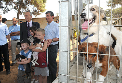 שמחון ועזרא בסיור בכלביית האגודה (צילום: ירון ברנר)