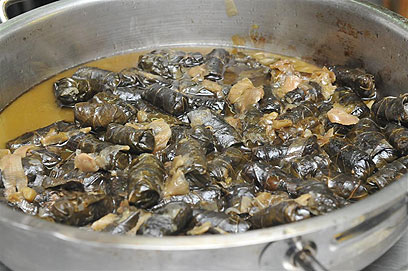 עלי גפן ממולאים באורז, מבושלים עם כרשה, שמן זית ולימון