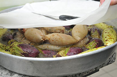 מכסים את הכלי בנייר פרגמנט (צילום: ירון ברנר)
