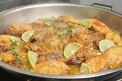 מפזרים לימונים וטימין ומעבירים לכיריים (צילום: ירון ברנר)