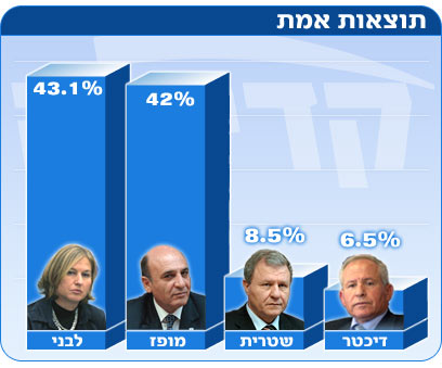 תוצאות האמת: לבני 43.1%, מופז 42%