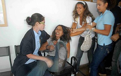 אמו של ברכה משתוללת בבית המשפט, הבוקר (צילום: דנה קופל)