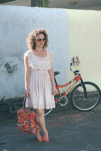 שמלה: "פיליה"; סנדלים: משוק הכרמל בתל אביב; תיק: של חברה;