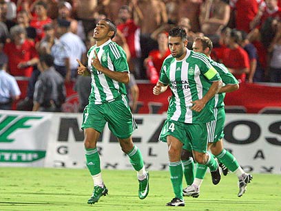 הקפטן לואיק פרן מברך את דימיטרי פאייה אחרי השער (אלי אלגרט)