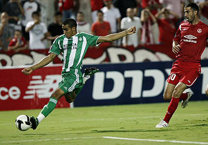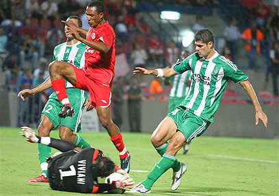 יבואה בורח מטבלרידיס ומדלג מעל השוער ויויאני. בלי הכדור (אלי אלגרט)