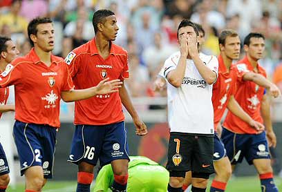 דויד וייה מולנסיה (בלבן) הערב מול אוסאסונה (צילום: AFP)
