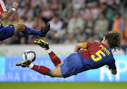 קרלס פויול מעופף מול גיחון. הוא דווקא לא כבש (צילום: AFP)