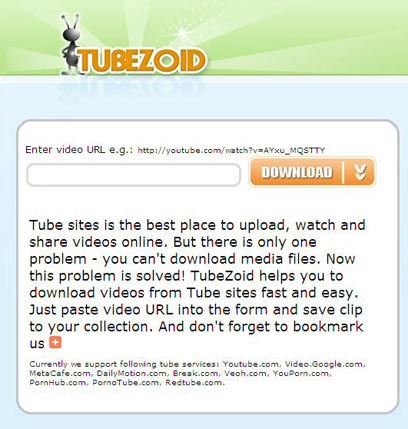 ל-TubeZoid באופן ספציפי יש תכונה יפה שהופכת אותו נוח במיוחד: אם מצאתם וידאו שאתם רוצים להוריד, כל מה שעליכם לעשות הוא להחליף בכתובת הדף שלו את השם YouTube ב-TubeZoid. לדוגמא, הכתובת