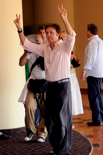 אחרי שנחת בישראל באמצע הלילה, הספיק פול מקרטני להתעורר הבוקר (ד') במלון דן בתל-אביב, לאכול ארוחת בוקר מהתפריט המיוחד שדרש ולגרום לעשרות צלמים לחכות ולחכות. כשלוש שעות עמדו צלמים במלון התל-אביבי וחיכו לסר פול שיראה את פרצופו ויעשה סימנים של שלום למצלמה.