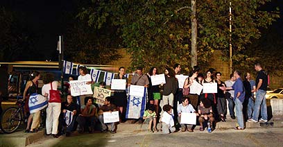 ההפגנה מחוץ לביתו של שטרנהל (צילום: גיל יוחנן)