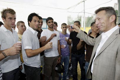 לאחר הברכות - דברים חריפים. גאידמק והשחקנים (צילום: דודי ועקנין)