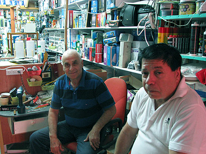 "מתנות? מתרכזים באוכל לחג". שמעון ומשה בחנותם (צילום: רוני ליפשיץ)