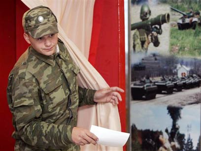 חייל מצביע בקלפי בבירה מינסק (צילום: AP)