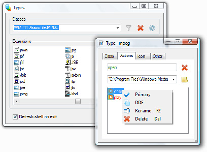 בתפריט המאפיינים של סוג הקובץ אפשר לשנות את הסמל שמוצג ליד אותו סוג, לשייך אותו לכמה תוכנות שונות לפי הפעולות האפשריות באותו סוג קובץ - עריכה, פתיחה לתצוגה בלבד ועוד.