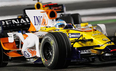 היסטוריה במירוצי הפורמולה 1. פרננדו אלונסו, פעמיים אלוף עולם עבור קבוצת רנו, זכה בניצחון מרשים במירוץ הראשון שנערך לאור זרקורים. לואיס המילטון כבר נוגע בכתר