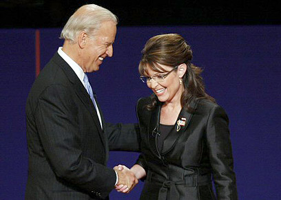 פיילין וביידן לפני העימות (צילום: רויטרס)