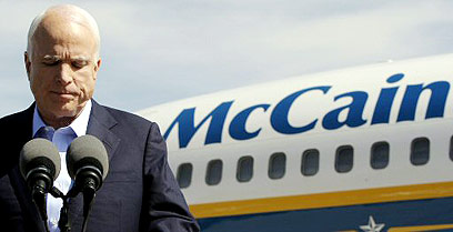 על מישיגן הוא כבר ויתר. מקיין על רקע מטוסו (צילום: רויטרס)
