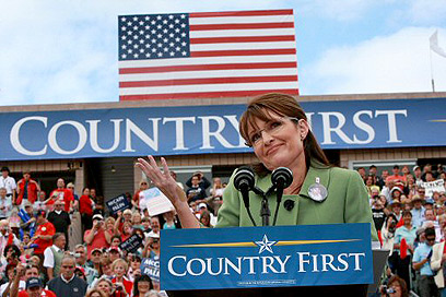 שרה פיילין בעצרת תמיכה בקליפורניה (צילום: AFP)
