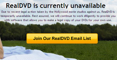 תוכנת RealDVD, המאפשרת להעתיק סרטי DVD למחשב איננה זמינה להורדה כעת - זאת בעקבות תביעה שהוגשה על ידי