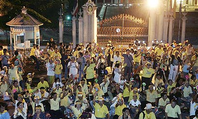 מפגיני האופוזיציה שהתבצרו במשך שישה שבועות בקריית בניין הממשלה בבירה התאילנדית, בנגקוק, צעדו אמש (יום ב') לרחוב שמחוץ לבניין הפרלמנט ונשבעו למנוע מהממשלה להצהיר בפני חברי הבית על מדיניותה. הפעולה של תנועת האופוזיציה "הברית העממית למען דמוקרטיה" באה על רקע מעצרם בימים האחרונים של שניים ממנהיגיה.