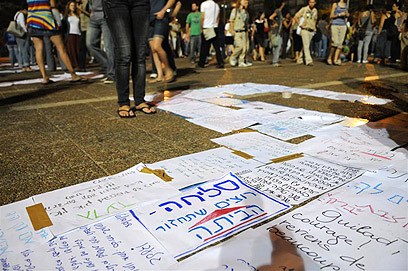 כמה מהשלטים בעצרת (צילום: ירון ברנר)
