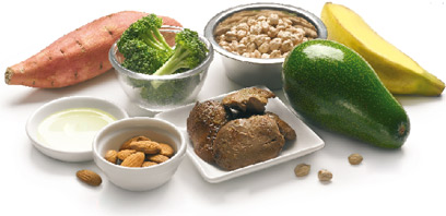 דוגמה למינון יומי מן המזון: 2 בננות, 2 תפוחי אדמה בינויים אפויים, 225 גרם חזה עוף.