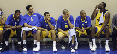 ספסל מכבי ת"א, אמש. הפנים אומרות הכל (צילום: חגי אהרון)