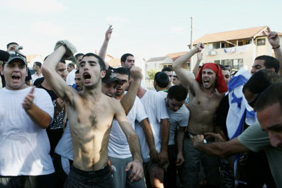 מפגינים בעכו. עשרות נעצרו במהומות (צילום: AFP)