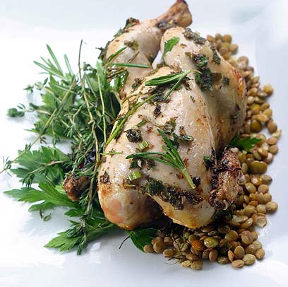 כשמגישים שלווים או עופיונים בארוחה יש לחשב שליו/עופיון אחד לכל סועד, למנה עיקרית. המתכון שלפניכם פותח בהשראת המטבח הצרפתי. הוא עושה שימוש בשני מוצרים, עדשים וענבים, המשתלבים באופן קלאסי עם עופות קטנים, כמו שלווים ועופיונים. יופי של מנה חגיגית וסמלית לסוכה. חג שמח!