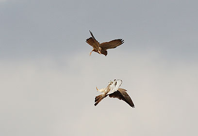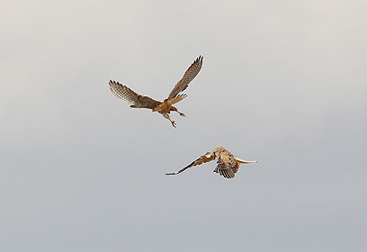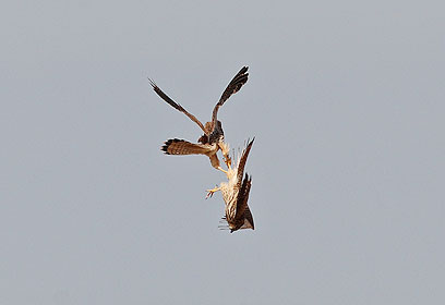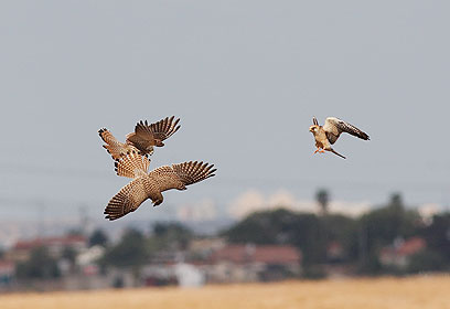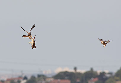 עשרות אלפי דורסים פוקדים את שמי ישראל במהלך נדידת הסתיו. במהלך עצירות הביניים למנוחה ולחיפוש מזון, פורצות גם מלחמות בין הדורסים. הצפר והצלם אמיר בן-דב תיעד מריבה אווירית בין צמד בזים רעבים שנאבקו על חיפושית פריכה