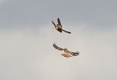 בן-דב מציין כי הבחין בבז מצוי צעיר שהצליח ללכוד חיפושית שחורה וברגע שבז מצוי צעיר אחר הבחין בו, הוא החליט לרדוף אחריו באוויר במטרה לחטוף ממנו את השלל.